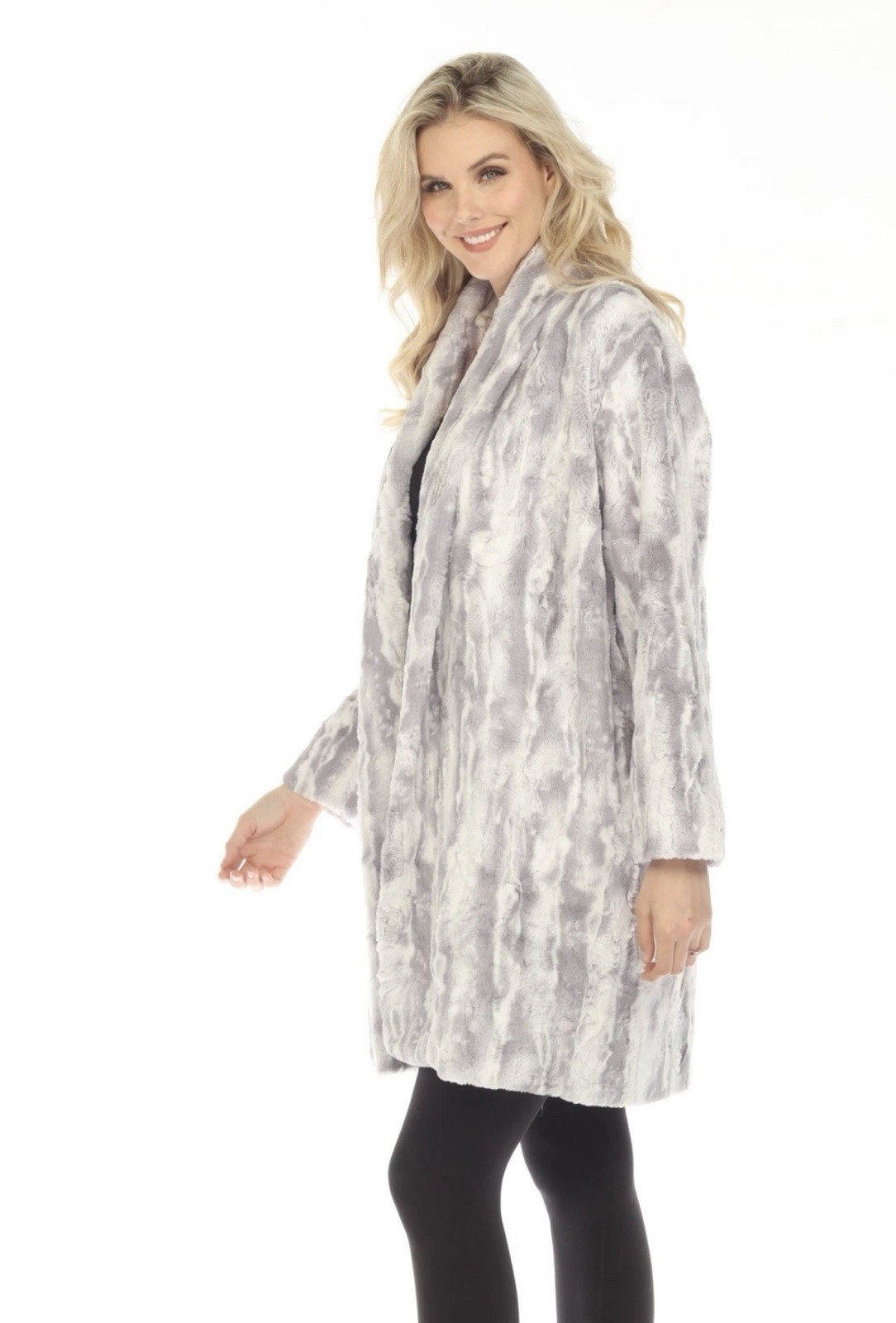 The Johnny Was Workshop Cloud Faux Fur Jacket in size XL is a stunning designer piece with a vintage flair. This multi-color geometric jacket features faux fur and fleece outer shell material, with a silk lining for luxury. The jacket is accented with fur trim, has long sleeves and a long jacket/coat length, making it perfect for the fall, winter, or spring seasons. Ideal for parties, cocktails, or business events, this basic jacket exudes an artful, bohemian vibe that is both stylish and versatile. Designed by Johnny Was, this jacket is a must-have for any fashion-forward woman looking to make a statement.