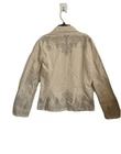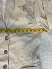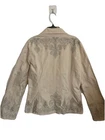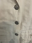 Add a touch of bohemian elegance to your wardrobe with this beautiful cream blazer from Johnny Was. The embroidered floral pattern and button accents give it a lightweight and airy feel, perfect for summer, fall, or spring. The mid-length jacket features long sleeves and a collared neckline, making it suitable for travel, casual outings, workwear, or business occasions. Crafted from cotton, this blazer has a regular fit and is machine washable for easy care. It's a great addition to any wardrobe, whether you're dressing up or down.