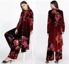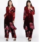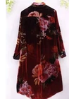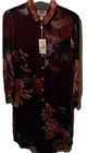 This is a Johnny Was women's shirt dress in size S, featuring a floral pattern on red velvet fabric with a collared neckline and long sleeves. The dress has a button closure and falls to a midi length, suitable for parties, casual wear, or holiday occasions. The style is relaxed and bohemian, perfect for the winter, fall, and spring seasons.