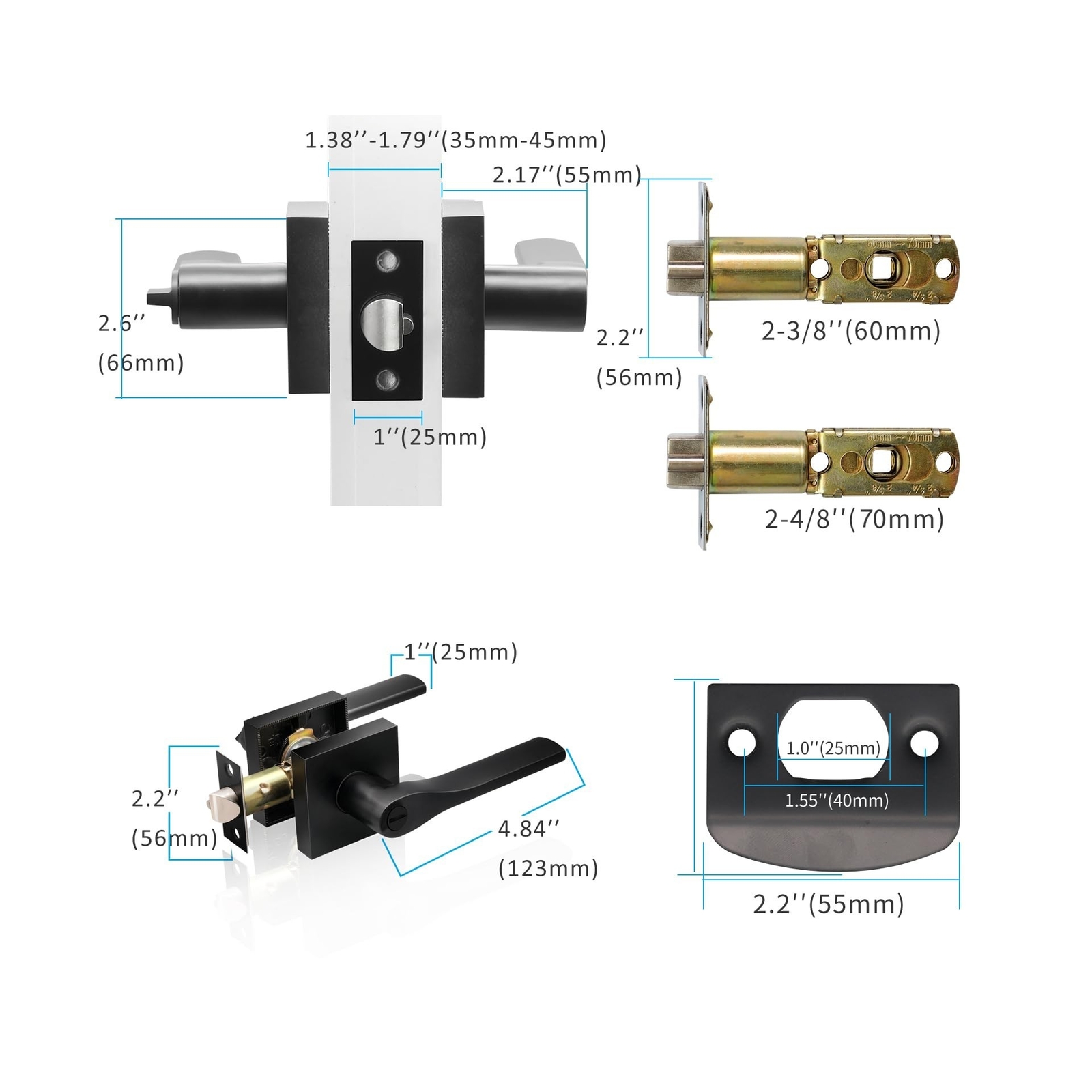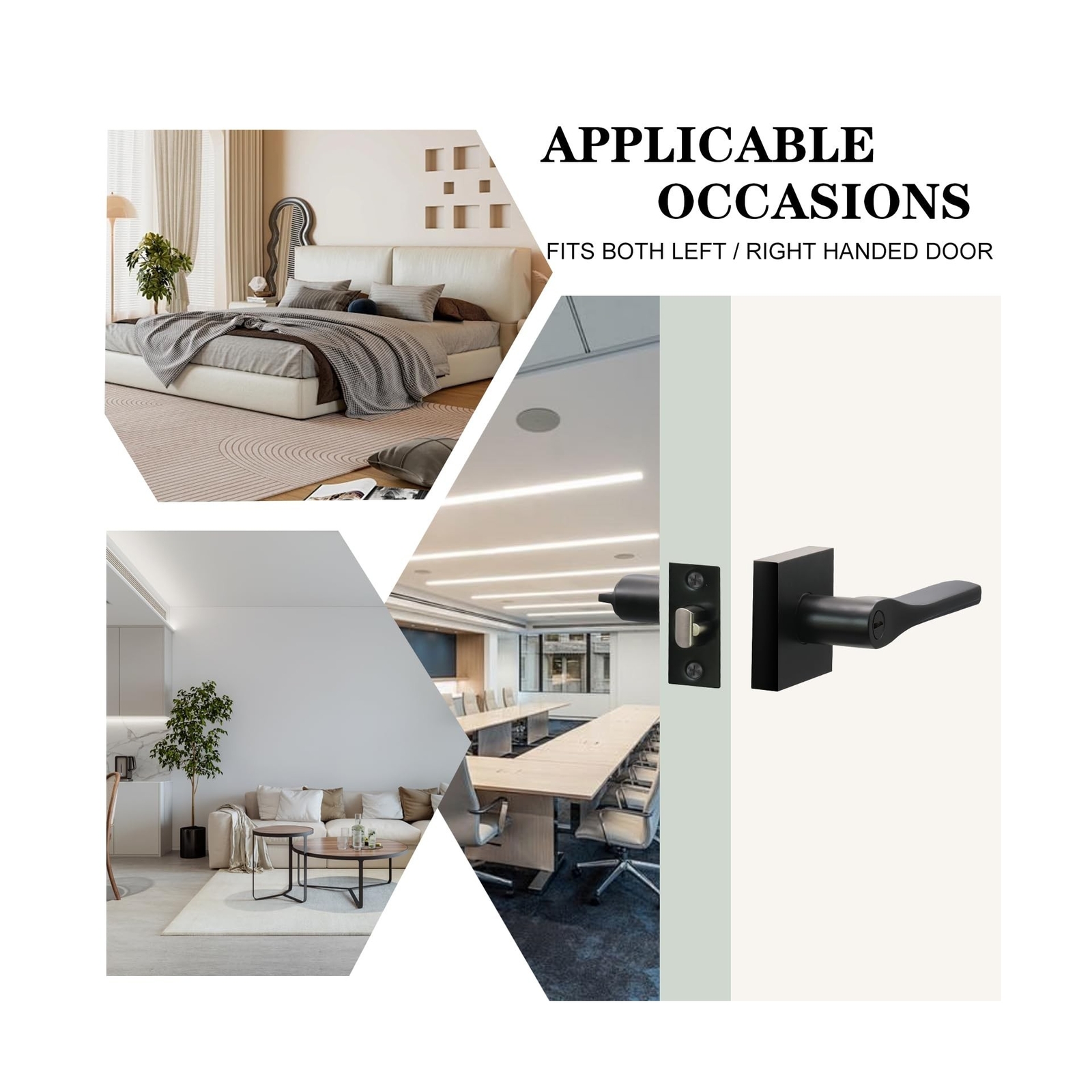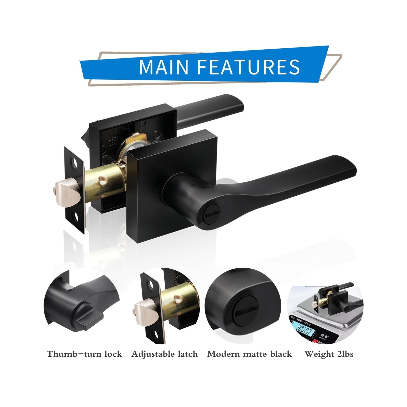 JO.KO Matte Black Door Knob, Interior Privacy Keyless Entry Door Lock, Square Style Reverisble Door Handles, Heavy Duty Door Levers for Bedroom Bathroom Doors Description Features: Privacy Door Levers Keyless Matte black privcay door handles can be used in bedroom bathroom. For interior privacy use, keyless door lever locked internally with a thumb-turn or opened externally with a coin-operated unlock hole in case of emergency. Quality and Durability Heavy-duty door handle is made of premium quality zinc alloy and brass parts to guarantee rust-free in a high humidity environment. The door lever has a thick and smooth black color powder coating for long-lasting product life. Privacy FunctionWithout keys. When locked from inside, the lock could be opened from outside with emgency tool, such as a coin. Best use for bathroom or bedroom door. Adjustable LatchThe door latch can be adjusted for 2-3/8" (60mm) or 2-3/4" (70mm) from the edge. All our door handles work for doors with thickness range from 31mm to 46mm. Easy To InstallInstall your lockset in a flash. All you need is a door and a tool set! No need for professional door fitters, you can do it yourself! Product Details: Material: Metal Brand: JO.KO Color: Matte Black Product Dimensions: 4.85"L x 2.56"W Exterior Finish: Black Material: Metal Brand: JO.KO Color: Matte Black Product Dimensions: 4.85"L x 2.56"W Exterior Finish: Black Included Components: Screw, Installation Hardware Lock Type: Push Button Lock Handle Material: Zinc Hand Orientation: Ambidextrous Manufacturer: JO.KO Item Weight: 8.14 pounds Size: 6 Pack Finish: Matt Batteries Included?: No Batteries Required?: No Date First Available: July 5, 2024 Shipping Most orders will be shipped within 1 business days once we receive your payment. Except on weekend or public holidays. A shipping notification will be emailed to you once your order has been shipped. International shipping via eBay Global Shipping Program. No shipping to AK, HI, PR, APO/FPO, US Protectorates and PO Box. Payment We Accept Payment Via PayPal and All Major Credit Cards. Return We stand behind our products. Items can be returned for exchange or full refund within 30 days from the date you receive your merchandise. Return shipping is the responsibility of buyer unless the return is a result of our mistake (i.e., your receive the wrong item). We will pay for shipping replacement back to you if an exchange of the same product is requested. Contact us If you have any questions please contact us. We respond within 1 business day or less.