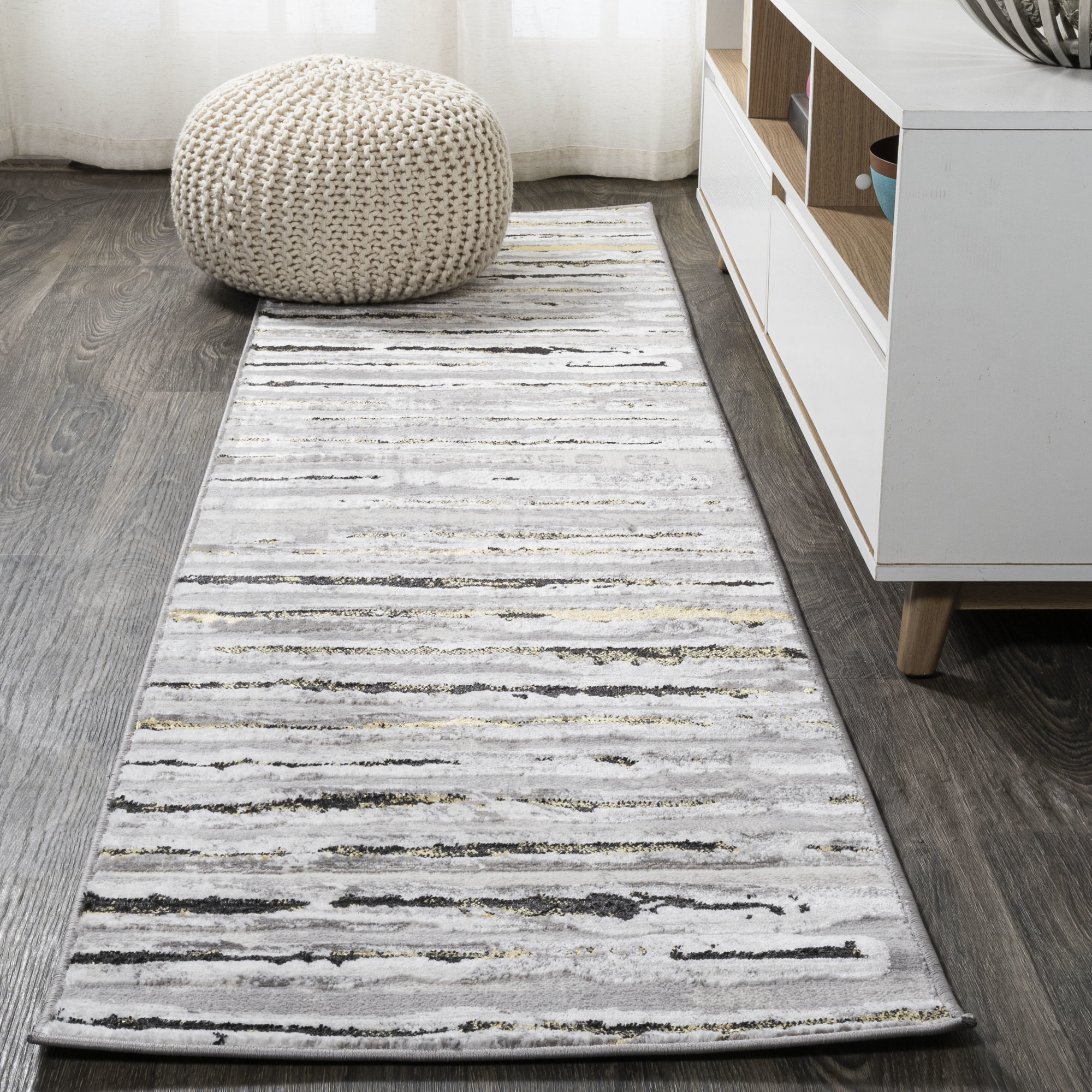 This Jonathan Y Lighting runner is a game-changer for any space! The blend of turquoise, gray, and ivory creates a stunning mid-century vibe that instantly elevates my kitchen. The polypropylene material is super durable—perfect for my busy household with kids and pets. The subtle striped pattern adds just enough visual interest without overwhelming the room. Easy to clean, stylish, and surprisingly soft underfoot. It ties my whole decor together beautifully—absolutely love it!