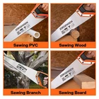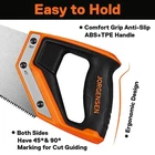 Product Description Tips: For precise cuts, use measure and marking as an aid, then through steady pressure to gently guide the teeth into the cutting object to create a groove, where you start cutting deeper. 【 Durable Material 】Our 20” hand saw is made of 0.85 mm thick high carbon steel blade, three-ground teeth and induction hardened 11 teeth for long-lasting sharpness and durability. So choosing a suitable hand saw is very important to finish excellent wood-cutting work. 【 Fast Cutting 】Triple-ground teeth and 11TPI (11 teeth per inch) for cutting faster, the blade has better performance than traditional handsaws, and achieves high efficiency and quality work. Professional hand saw fast cuts on push and pull strokes, deep tooth grooves for quick chip removal. 【 Ergonomic Handle 】JORGENSEN 20” universal hand saw with a non-slip ABS+TPE soft grip, effectively adds comfort for prolonged work. In addition, the size of the handle is ergonomically designed to relieve hand fatigue during use. Both sides of the handle have 45° and 90° auxiliary angles to get the accurate cutting position. 【 Easy to Use 】Delicate processing handsaw is specially designed for cutting, and meets your daily basic woodworking, compact size for storage easy to operate and use, can cut plastic PVC pipe, plywood, wall panels and other materials, ideal for woodworkers, carpenters, arborists, gardeners, home decorators and DIY enthusiasts. 【 Work Helper 】A multi-purpose hand saw, a highly recommended partner in the toolbox. The blade has strong stability, the teeth are protected with extra plastic, and a cardboard sleeve surrounds the blade for easy storage and maintenance. Produces smooth, sharp and fast cuts while ensuring safety. Brand Jorgensen Color Orange Blade Material High Carbon Steel Surface Recommendation Wood, Plastic Product Dimensions 20"L x 2.5"W x 7"H Blade Length 20 Inches Cutting Angle 90 Degrees Manufacturer HANGZHOU GREATSTAR INDUSTRIAL CO. LTD