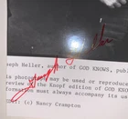 An original black and white photograph signed by Joseph Heller in red ink. Joseph Heller is the author of Catch-22, God Knows, Good as Gold, and others. The photograph is an original press photo that has had it's edges trimmed. Some signs of wear, else in good + condition. If you have any questions feel free to ask and don't forget to check out my other listings.
