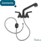 JS Jackson Supplies Dual Handle Pull Out Faucet, Black Utility sink, Product Details Brand: JS Jackson Supplies Recommended Uses For Product: Sink Mounting Type: Deck Mount Finish Type: Matte Material: Acrylonitrile Butadiene Styrene Color: Black Number of Handles: 2 Included Components: Sprayer, Aerator, Instruction Manual Hole Count: 3 Special Feature: Dual Function Sprayer Handle Type: Lever Style: Classic Installation Type: Centerset Handle Material: Plastic Spout Height: 9 Inches Spout Reach: 9.5 Inches Item Weight: 1 Kilograms Spout Design: Straight Hose Length: 20 Inches Is Electric: No Manufacturer: JS Jackson Supplies Product Dimensions: 9.5"D x 10.25"W x 9"H Part Number: 012 JSFCT10BLK Item Weight: 2.2 pounds Country of Origin: China Item model number: 012 JSFCT10BLK Size: Utility sink Finish: Matte Special Features: Dual Function Sprayer Batteries Included?: No Batteries Required?: No Brand: JS Jackson Supplies Recommended Uses For Product: Sink Mounting Type: Deck Mount Finish Type: Matte Material: Acrylonitrile Butadiene Styrene Color: Black Number of Handles: 2 Included Components: Sprayer, Aerator, Instruction Manual Hole Count: 3 Special Feature: Dual Function Sprayer COMPLETE FAUCET KIT; package includes everything you need for installation, including faucet handles, pull out sprayer, garden hose attachment, washer, and spray hose; supply lines not included MEASUREMENTS; assembled faucet measures 9 ½ inches long, 9 inches tall, and 6 ½ inches wide at the base (10 ¼ inches wide from handle to handle); 4 inch center set, spray hose measures 20 inches long EASY TO USE; quick connect sprayer hose snaps into place for easy installation; step by step assembly instructions included in every order MADE WITH DURABLE MATERIALS; ABS plastic faucet is sturdy and will never corrode or rust; chip and scratch resistant STYLISH APPEARANCE; polished chrome finish is easy to clean; perfect for elevating your laundry room or utility sink JS Jackson Supplies faucets are the perfect way to add a fresh new look to your sink or utility tub. With the 20 inch fully flexible pull-out sprayer, it’s easier than ever to wash dishes, soak clothes, or fill mop buckets. Choose between a steady stream of water or a wide spray with the touch of a toggle button on the weighted faucet faucet is designed with you in mind. Dual handles ensure effortless temperature control, while clearly marked hot and cold symbols help you avoid confusion and make the faucet easy for kids to use. Our matte black finish makes this faucet an elegant addition to any room, whether you’re replacing your existing faucet or setting up a new utility sink in your basement or ABS plastic sink faucet comes with a removable aerator so you can easily attach a garden hose to rinse off muddy shoes or water outdoor plants. This universal faucet is compatible with any standard three-hole sink and meets or exceeds all lead-free standards and requirements. Make it yours today!The JS Jackson Supplies team is standing by to help you with any questions or concerns. We're happy to help with product inquiries or instructions, and if there's a problem with your order, we want to make it right. Contact us at any time through the Buyer-Seller Messaging Service.Manufacturer’s Part #: 012 JSFCT10BLK.