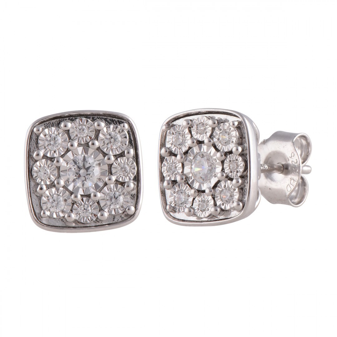 These JTV White Diamond Accent Rhodium Over Sterling Silver Earrings are a stunning piece of fine jewelry. The square shape and dainty design make them a perfect accessory for any outfit. With a main stone of white diamond and a secondary stone of diamond, these earrings exude beauty and elegance. The rhodium over sterling silver adds a touch of luxury, while the butterfly closure ensures secure wear. Perfect for those looking for a stylish and sophisticated addition to their jewelry collection.