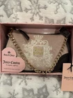 The JUICY COUTURE Velvet Mini Wristlet with Mini Heart Charm Purse "Theme Box" Set is a stylish and luxurious accessory for women. Made from plush velvet in a mini size, the wristlet is perfect for storing small essentials while on the go. The “Theme Box” includes a mini heart-shaped charm purse, which is paired perfectly with the wristlet.