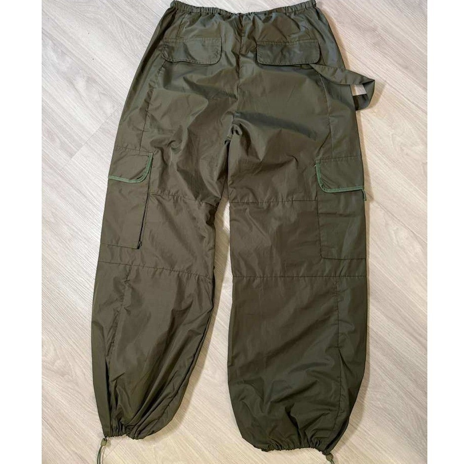 Effortless cool meets functional fashion with these Justa Petra cargo pants. Designed for a relaxed, baggy fit, they feature a comfortable drawstring waist and ample pocket space, making them your go-to for everyday adventures. The adjustable drawstring at the ankle allows for versatile styling, from a cinched jogger look to a wide-leg silhouette. Style: Cargo Department: Women Leg Style: Wide-Leg Type: Pants Features: Pockets, Adjustable Waist, Cuffed, Lightweight Closure: Drawstring, Pull On Pattern: Solid Accents: Strap, Zipper Theme: Army Occasion: Casual Waist Size: 38 in Fit: Relaxed Rise: Mid (8.5-10.5 in) Front Type: Flat Front Keywords: Justa Petra, cargo pants, parachute pants, parachute, baggy, oversized, drawstring waist, streetwear, athleisure, travel pants, utility pants, joggers, olive green, casual