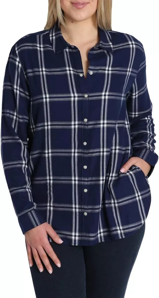 Jachs Girlfriend Women's Long Sleeve Button Up Blouse Size: Small Color: Blue Content: 65% Rayon / 35% Polyester