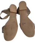 These sandals are like the golden ticket but for your feet. With a chic snakeskin pattern, they whisper elegance while shouting comfort. Ideal for those who want to strut their stuff without sacrificing style or suffering in stiletto pain. Your feet will thank you with every step. • Adjustable Ankle Strap For Better Fit • Open Toe Design • Slip-On Style • Flat Heel For Comfort • Padded Footbed For Cushioning Outsoles show signs of wear with visible scuffs, but nothing a little dance won't hide.