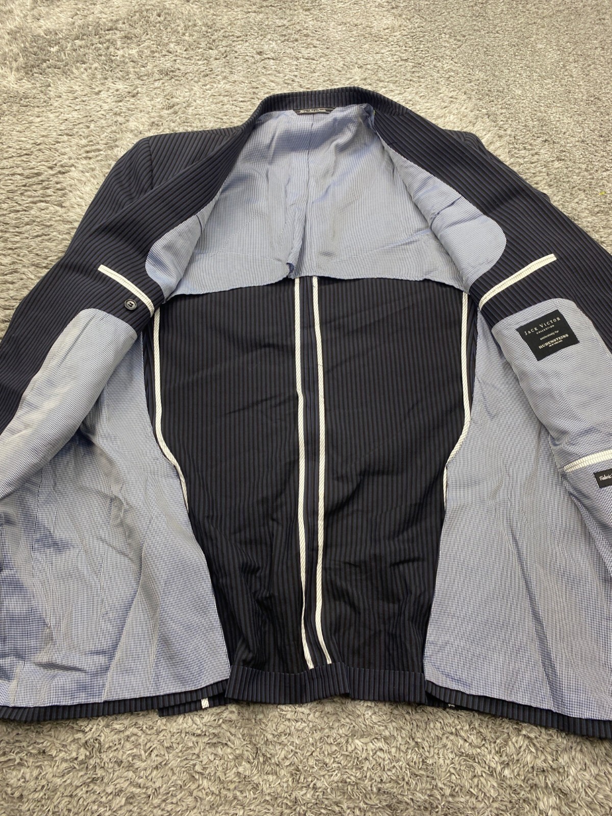 Jack Victor Blazer Men 44R Pinstriped Wool Blend Sports Coat Jacket Woven Italy