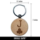 Jack of Clubs Card Suit Engraved Wood Round Keychain Tag Charm
