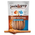 Jack&Pup Premium Grade 6'' Thin Cut Bully Sticks is a highly digestible tender dog chew, being mildly-hard, making it a perfect choice for small and aging dogs. Guaranteed to be fully digestible and guaranteed not to cause any side-effects. Each baby bully stick is approximately 6” long. Contains only beef muscles, without any additives or artificial ingredients. Long lasting treat; keep your dog occupied while chewing away on this savory and flavorful dog treat! Jack&Pup Premium Grade Baby Bully Sticks are carefully prepared by boiling, roasting and smoking; then drying in a slow process. The multi-step process effectively locks-in the natural beef flavor resulting in an enhanced richness that dogs love. At the same time, the propriety process keeps it fresh naturally without the use of any additives or chemicals. Stays fresh longer without any added preservatives. Sourced from grass fed, free range cattle; raised without any added hormones or antibiotics, resulting in a healthier and better tasting treat. Each baby bully stick is handpicked and inspected to ensure quality, texture and perfect consistency. Your canine will enjoy its’ delicious and fresh meaty flavor! About : is a company founded by meat experts. As pet lovers, we set out to create naturally healthy dog treats from premium meat sources. This means consistent high quality in every package. is every pet family’s favorite! Size: 6 inches long Quantity: 30 Sticks Guaranteed Analysis: Crude Protein (min): 75% Moisture (max): 14.5% Crude Fiber (max): 3.5% Crude Fat (max): 3.5% Country of Origin: Brazil Quality Treat - puppy bully sticks are super thin bully sticks for dogs. Perfect bully sticks for small dogs, especially very young puppies and senior dogs. This 25 piece pack of 6" single ingredient dog chew sticks, have all the health perks of non-GMO, no preservatives plus they have a delicious beefy flavor your pup is sure to love! Pure Goodness- Honest to goodness all natural, single ingredient dog treat! No hidden ingredients, chemicals, additives or fillers in our premium baby chew sticks for dogs dog treats. No artificial flavors, preservatives or colors. Naturally high in protein, this is a treat you won't feel guilty about! Natural Flavor & Fresh – Puppy chew sticks are carefully prepared by boiling, roasting and smoking; then drying in a slow process. The multi-step process effectively locks-in the natural beef flavor resulting in an enhanced richness that dogs love. At the same time, the process keeps it fresh naturally without the use of any additives or chemicals. Stays fresh longer without any added preservatives. Supports Healthy Teeth & Gums – By ensuring its’ consistently perfect texture and thickness, Jack&Pup junior bully sticks helps keep the dog’s teeth healthy and clean. Effectively removes tartar build-up, strengthens the gums, removes plaque and promotes an overall enhanced oral health. The Jack&Pup Family Guarantee - At we consider you family, and you have our family guarantee that you will be satisfied! If you love us, give us a shout out, and if there are any concerns with the treats you received, please reach out to our always ready to help costumer service team so we can make it right!