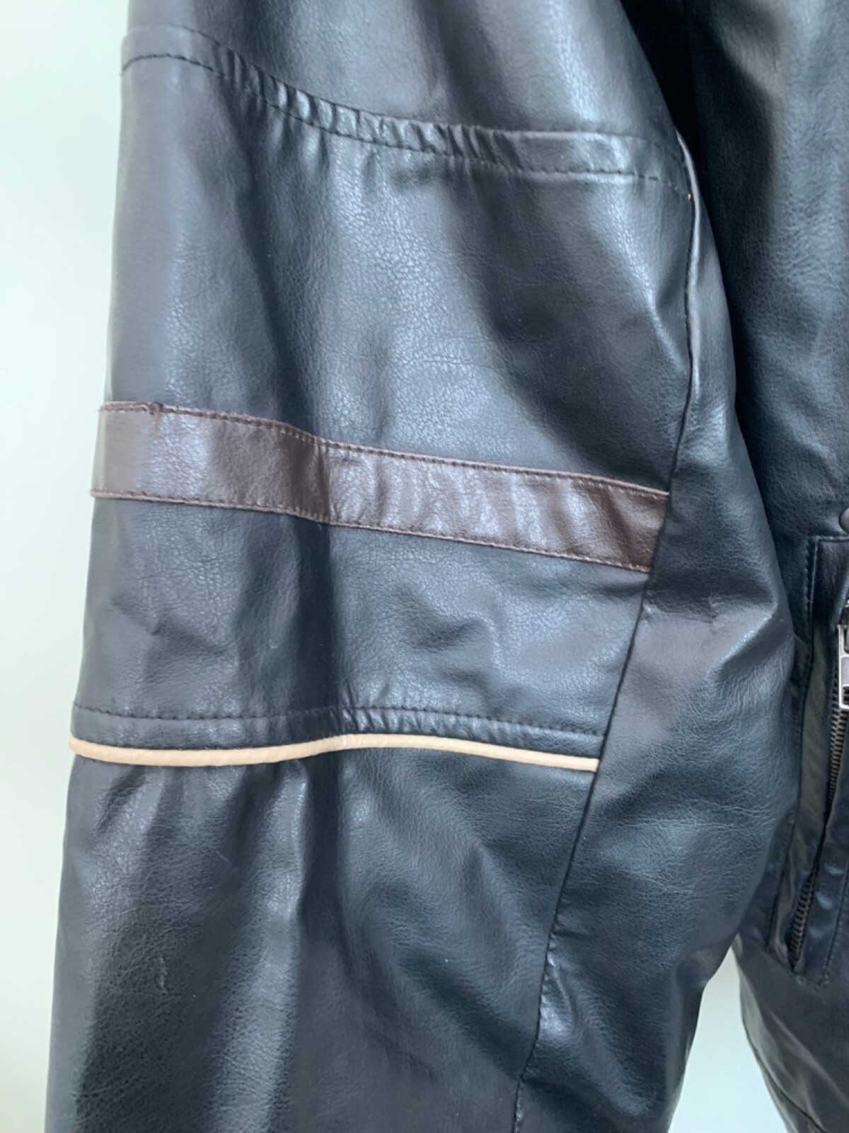 Jacket size XL Chest 42" Black Polyurethane zip up high neck Mens Quilt lined .. one out of the two popper fastener has broken at the neck .. "We strive to give good quality and service, please get in touch with any problems. Please look at our eBay shop where new items are added daily. Many thanks for your interest - we are raising money for a school in Uganda - to give children the chance of a life changing education. Thank you for your time"