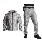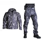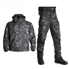 TAD Tactical Jacket Men Soft Shell Jacket Army Waterproof Camo HuntingClothes Suit Camouflage Shark Skin Military Coats+Pants Material: Polyester + Cotton Feature: For Pants: 1. High waist design, more fashion and casual, tightness adjustment for windproof. 2.Strong retro style brand metal zipper, fully waterproof zipper, smooth and wear-resistant. 3. Super soft and smooth material. 4. Totally 4 large pockets, 2 zippered pockets, 2 Velcro pockets. 5.Adjustable high waist design. 6. Sealed stitching, superior workmanship, exceptional quality. 7. Soft fleece lining for comfort and warmth. 8. Totally 5 belt buckles For Jacket: 1.Warm collar for neck protection 2.Durable top quality zipper 3.Zipper in the underarm 4.Velcro on the arm, 5.3 Arm pockets for small items. 6.Cuff velcro,Cuff is adjustable 7.Hem Tightened Drawstring Design,Exquuisite Workmanship. 8.Tightness stitching,Exquuisite Workmanship 9.Soft fleece lining for comfort and warmth. 10.Multi-pocket design, a total of 6 zipper pockets: 2 on the front, 3 on the sleeves, and oversized zipper pockets on the bottom of the back 11.Extra Thicken Elbow Pad We do promise: 1: All products will be checked carefully before sending 2: No invoices or information about us will be showen in the package 3: For Brand dropshipping sellers, we do provide free packages for their own brand Package : 1 Set ( Jacket + pants )