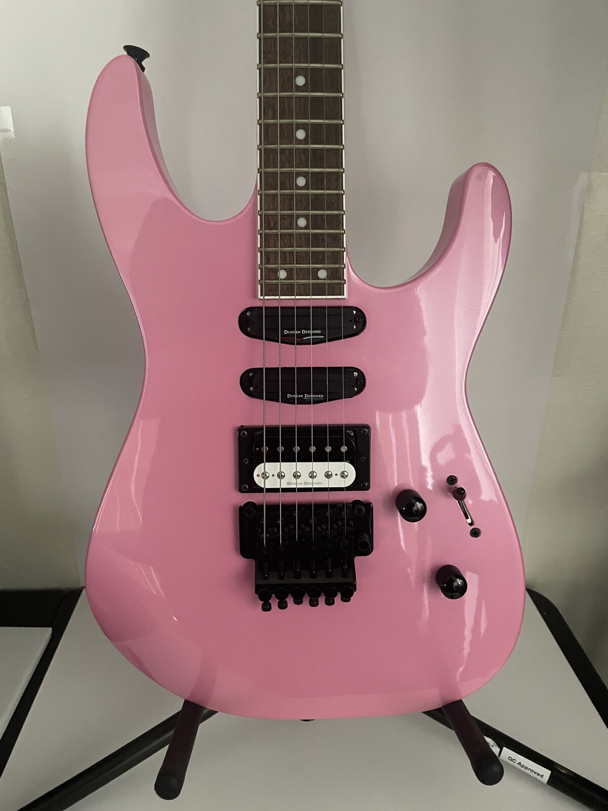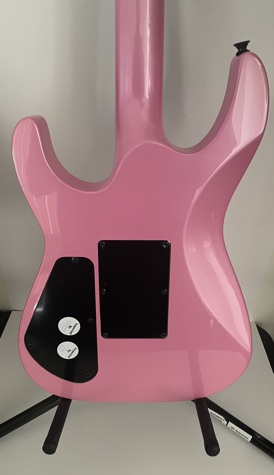 Jackson X Series Soloist SL1X Electric Guitar Laurel Platinum Pink & Case The guitar is Open Box Like New Condition. Includes Jackson Soloist Hard Case. Guitar still has plastic on backplates and tuners. Open Box Excellent Condition. Features: A stylishly contoured poplar body and pure Jackson neck-through-body construction ensure ergonomic comfort during long sets along with monstrous sustain and smooth playing all the way up to the 24th jumbo fret. Graphite-reinforcement rods run through the maple neck, protecting it against environmental depredations, while the ultra-fast 12"-16" compound radius bound laurel fingerboard is built from the get-go for easy chording and riffing near the nut and rapid, fret-out-free leads as you move up the neck. The SL1X comes loaded with a select power trio of Duncan Designed™ pickups; high-output HR-101 Hot Rails single-coil pickups in the middle and neck positions are matched to a powerful HB-103B humbucking bridge pickup for complementary harmonics and highly dynamic responsiveness. Harness the sonic horsepower of these versatile pickups with five-way pickup blade switching and single volume and tone controls. Specifications: Body Body Type: Solid body Soloist Body Material: Poplar Body finish: Gloss Color: Platinum Pink Neck Neck Material: Maple Joint: Neck-Through-Body with Graphite Reinforcement and Scarf joint. Scale length: 25.5" (64.77 cm) Neck finish: Gloss Fingerboard Material: Laurel Radius: 12"-"16 Compound Radius (304.8 mm to 406.4 mm) Fret size: Jumbo Number of frets: 24 Nut width:1.6875" (42.86mm) Electronics Configuration: HSS Neck: Duncan Designed HR-101 Hot Rails Middle: Duncan Designed HR-101 Hot Rails Bridge: Duncan Designed HB-103B Control layout: Individual volume, Individual tone Pickup switch: 5-way blade position. Hardware Bridge type: Floyd Rose Special Double-Locking Tremolo (non-recessed) Tuning machines: Jackson Sealed Die-Cast Color: Black Other Number of strings: 6 string Case: Hardshell case Orientation: Right handed Country of Origin: Indonesia Hardcase included. Please Contact us if you have any questions.