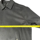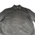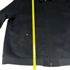 This is a Jacob Siegel x Nordstrom men's black wool blend jacket in size 2XL. It features a bomber style with a zip closure, lined with polyester for added warmth. The jacket has a solid pattern and includes pockets for convenience. The outer shell material is wool, and it is recommended for dry clean only. Perfect for staying stylish and comfortable during colder weather, this jacket offers a classic and versatile addition to any wardrobe.
