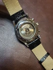 Nice condition maybe worn a handful of time. 40mm case, glossy black dial. Very pretty watch, chronograph functions work and reset as they should.