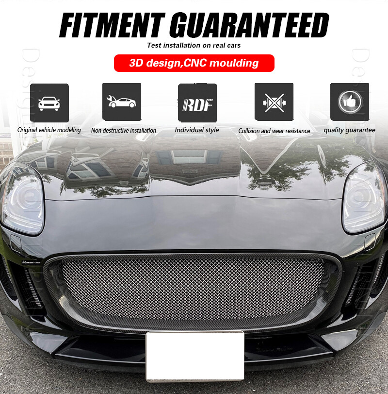 Upgraded my Jaguar F-TYPE with this carbon fiber grille cover and it looks absolutely stunning! The 3x3 twill weave gives it a high-end, sporty finish, and the UV coating keeps it glossy and protected. Fitment was spot-on—no drilling needed, just a direct replacement that snaps right into place like OEM. The carbon fiber is seriously durable yet lightweight, adding a sleek, aggressive touch to the front end. Installation was a breeze, and the quality feels premium. Huge improvement over the stock grille—total head-turner now!