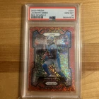 This is a rare Jahmyr Gibbs 2023 Panini Prizm #331 Red Sparkle Prizm Rookie RC PSA 10 card, featuring the Detroit Lions player in a National Football League (NFL) standard size. The card is an original and licensed reprint, manufactured in the United States by Panini. It is a short print, parallel/variety, and insert/chase card, making it a highly sought-after item for collectors. The card is graded by Professional Sports Authenticator (PSA) and comes with a grade of 10. It is a perfect addition to any football trading card collection and is sure to impress. Don't miss out on the opportunity to own this unique and valuable card.
