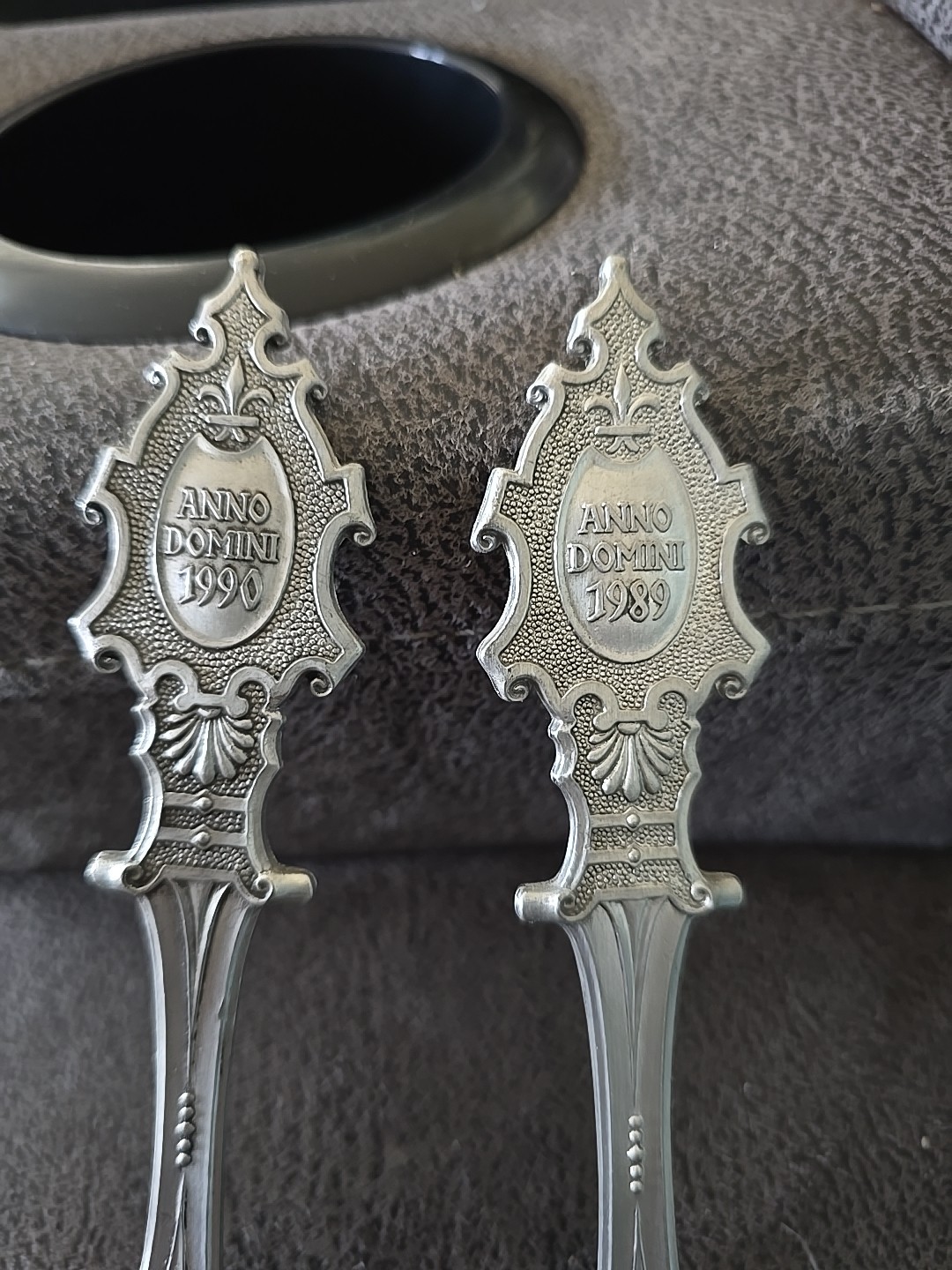 Jahresloffel WMF Zinn Germany Anno Domini Pewter Spoon Set Of Two 2. Condition is Used. Shipped with USPS Ground Advantage.