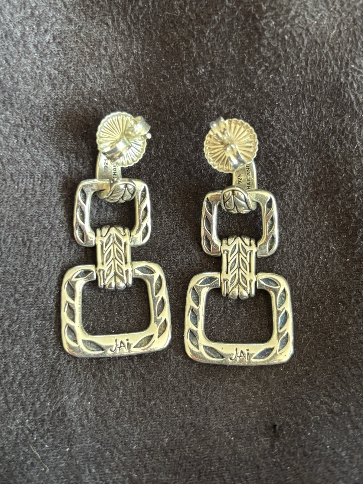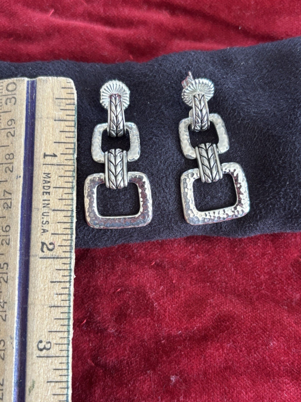 The Jai by John Hardy Sterling Silver 925 Buckle Saddle Drop Earrings are a stylish and unique pair of earrings perfect for any occasion. These dangle/drop earrings feature a sleek silver color and are signed by the brand John Hardy, ensuring quality and authenticity. Made from sterling silver with a metal purity of 925, these earrings have a length of 1 1/2" and are designed for the lobe ear area. The buckle saddle design adds a fashionable touch to these timeless and elegant accessories.