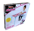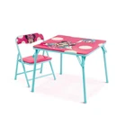 Now your child can have hours of fun with this colorful Activity Table set! The set comes with 1 table & 1 chair. Bright colorful graphics & large table surface for drawing, eating & playing. Vinyl surface is washable. Made of sturdy metal tubular construction. Adult assembly required, tool included. Chair includes a safety locking mechanism. The chair has a recommended weight limit of 70 lbs. Table Size: 20W x 20D x 16. 375H. Chair Size: 13. 5W x 12. 62D x 21. 375H. Suitable for kids ages 2-5. Join your favorite friend with the Mouse Folding Kids Junior Activity Table Set from Jakks Pacific Includes folding table for kids to use for drawing, eating and playing with a padded fold up chairs for extra comfort and easy travel Full color Disney Minie character graphics and non skid rubber feet to help protect floor surfaces and keep table stationary Designed for durability and safety with sturdy metal tubular construction and double locking mechanism Easy wipe washable vinyl table top surface and chair for toddlers (quick and easy no hassle cleaning) Toddler sized (ages 2 5) 20in W Square table top x 16.4in H (50.8cm x 41.6cm), assembly required (tool included)
