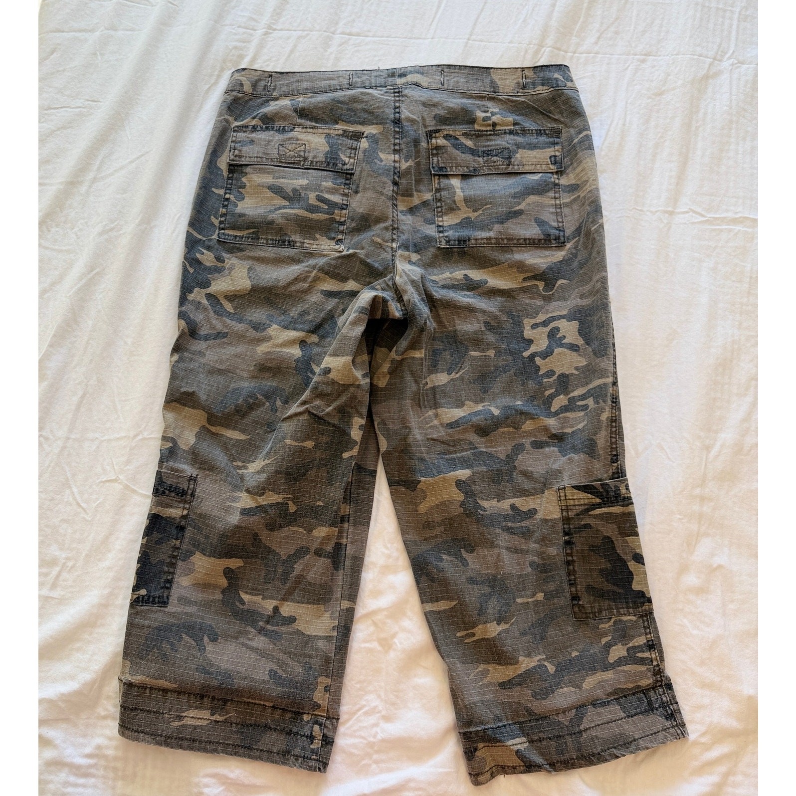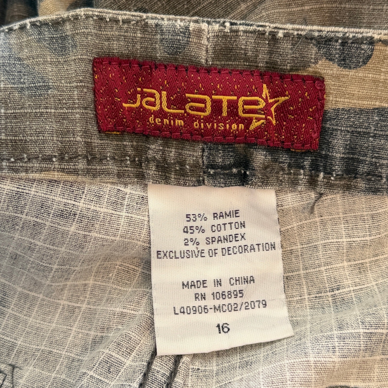Key Features: - Brand: Jalate Denim Division - Size: Women's 16 - Color: Green, Brown, Camouflage - Style: Cargo Capri Pants - Material: Denim - Versatile camouflage pattern - Multiple cargo pockets for storage - Comfortable and durable fabric - Perfect for casual wear Measurements: Waist: 38" Inseam: 24" Rise: 13" Leg Opening: 10"