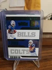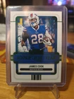 '23 prizm - neon green pulsars prizm base '23 prizm - red/white/blue prizm base '23 select - Red&Yellow Prizms Die-Cut club level base '24 select - Black/Gold Shock prizm base '22 contenders - round numbers rc insert green foil '22 illusions - mystique insert green '22 chronicles - playoff momentum RC insert '22 donruss - elite series rookies rc insert '22 legacy RC base red /299 '22 contenders rookie of the year rc insert green foil '22 illusions - operation deteonation rc insert ' 22 chronicles- gridiron kings rc inserts 1) regular 2) pink foil 3) teal foil The product is a lot of 14 rookie, insert, and parallel trading cards featuring Buffalo Bills running back James Cook. The cards are from various sets manufactured by Panini from the years 2022 to 2024, including the Panini Select, Donruss, Illusions, Prizm, Contenders, and Chronicles. These standard-sized cards are made of card stock and are original licensed prints. The cards are not autographed and do not feature a Super Bowl tournament event. They are all in English and are part of the National Football League (NFL) league.