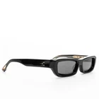 The James Oro Black Rogue Square Frame Sunglasses feature a sleek black color with black lenses, creating a bold and stylish look. Designed with a square frame, these sunglasses are suitable for both men and women. This new-in-box pair of sunglasses from FRAME is a versatile accessory for everyday wear, adding a touch of sophistication to any outfit.