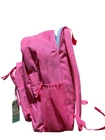 This JanSport Big Student backpack is perfect for students and anyone who needs a reliable and stylish bag. It features a softside bag structure with a canvas fabric type and a water-resistant protective quality. The backpack has a zip closure and a zip-around feature for easy access. It has a capacity of 34.41 liters and measures 17.5 inches in height, 13 inches in width, and 10 inches in depth. The backpack has multiple compartments, including an inner pocket, laptop sleeve/protection, and bottle pocket. It also has adjustable straps and a padded shoulder strap for added comfort. The backpack is spot or wipe clean and comes in a posh pink color. It fits laptops up to 15 inches and is suitable for school, travel, activewear, and casual occasions. Comes from smoke free home