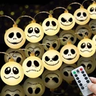 Janchs 30 LED Battery Operated Christmas Lights for Nightmare Before Christmas Decorations, Battery Outdoor Lights for Indoor Outdoor Decorations Home, Bedroom, Patio, Balcony,Christmas Party 【Rich Function】:battery powered, warm white, with Remote, 8 modes, shatterproof and waterproof, memory function, dimmable, timer. 【Unique Outdoor Halloween Decorations】The lights display four different faces for a truly fun and unique christmas yard decoration. 【Outdoor String Lights】:battery operated hanging string lights with 30 bulbs, total length: 26ft,which is enough for wrapping around as your bedroom, living room, dining room, garland, wreath , gazebo, deck, balcony, umbrella. holiday christmas halloween tree or wherever you like to light up. 【Safe & Reliable LED String Lights】:the lights are cool to the touch (even after having them on for hours at 100%). 10 brightness adjustment levels and 8 lighting modes to choose. 【Easy to install 】:no socket is required, no matter how far you are, you can install the battery string lights wherever you want, and hanging wherever you want. 【IP65 waterproof】:Fully Weatherproof, regardless of heavy snow, hot sunny weather, This product is designed with four different faces. It will be the focal point of your spooky garden decor. 【Widely Use for Any Occasions】: great for xmas tree garland wreath garden patio Indoor outdoor christmas decorations. could be used for halloween, christmas or a outdoor party.