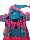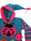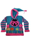 Janett'es Designs Handmade Wool Blend Full Zip Hooded Sweater Girls Small H50 In excellent condition Janett'es Designs Handmade Wool Blend Full Zip Hooded Sweater Girls Small. Features adorable colorful handmade wool blend ladybug sweater, full front zipper, hood with elf like extension and hot pink pom pom, hot pink ladybug knitted on front and back, drawstring hood with hot pink pom poms, charming floral design at bottom hem, long sleeve with stripes, unique shacket for your little girl. size small 6/8 Please review measurements as this is a handmade wool sweater and there is no size tag. Measurements laying flat chest 12.5" length 16" arm inseam 12.5" Fabric wool and cotton This is a pre-owned item that may show signs of wear. In excellent condition, no flaws.