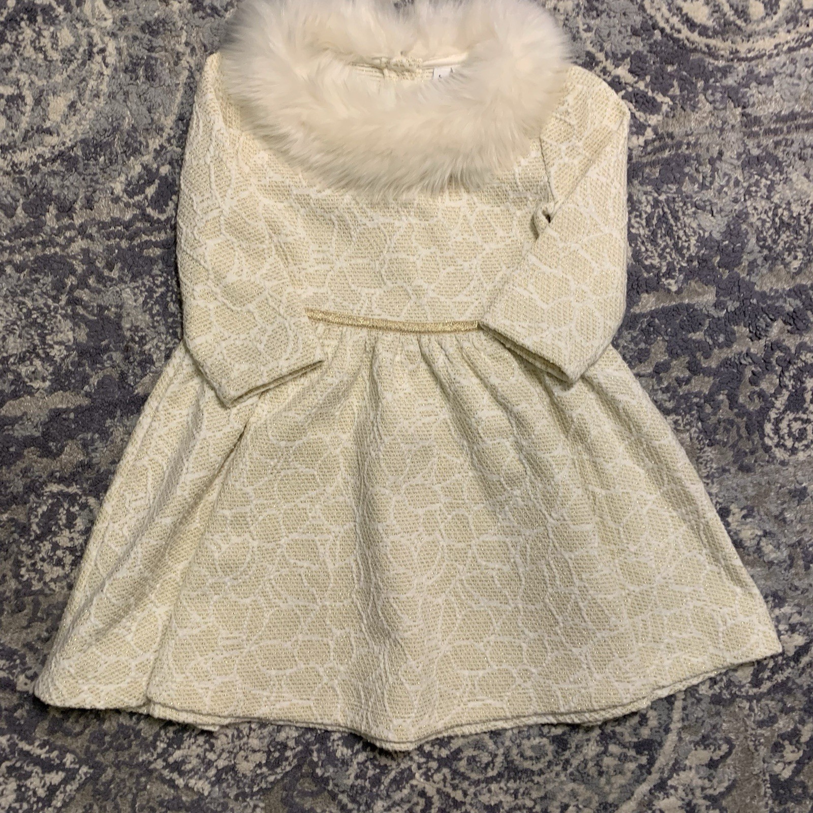 Janie and Jack Girls 3T Ivory Gold Fit & Flare Dress Faux Collar Holiday