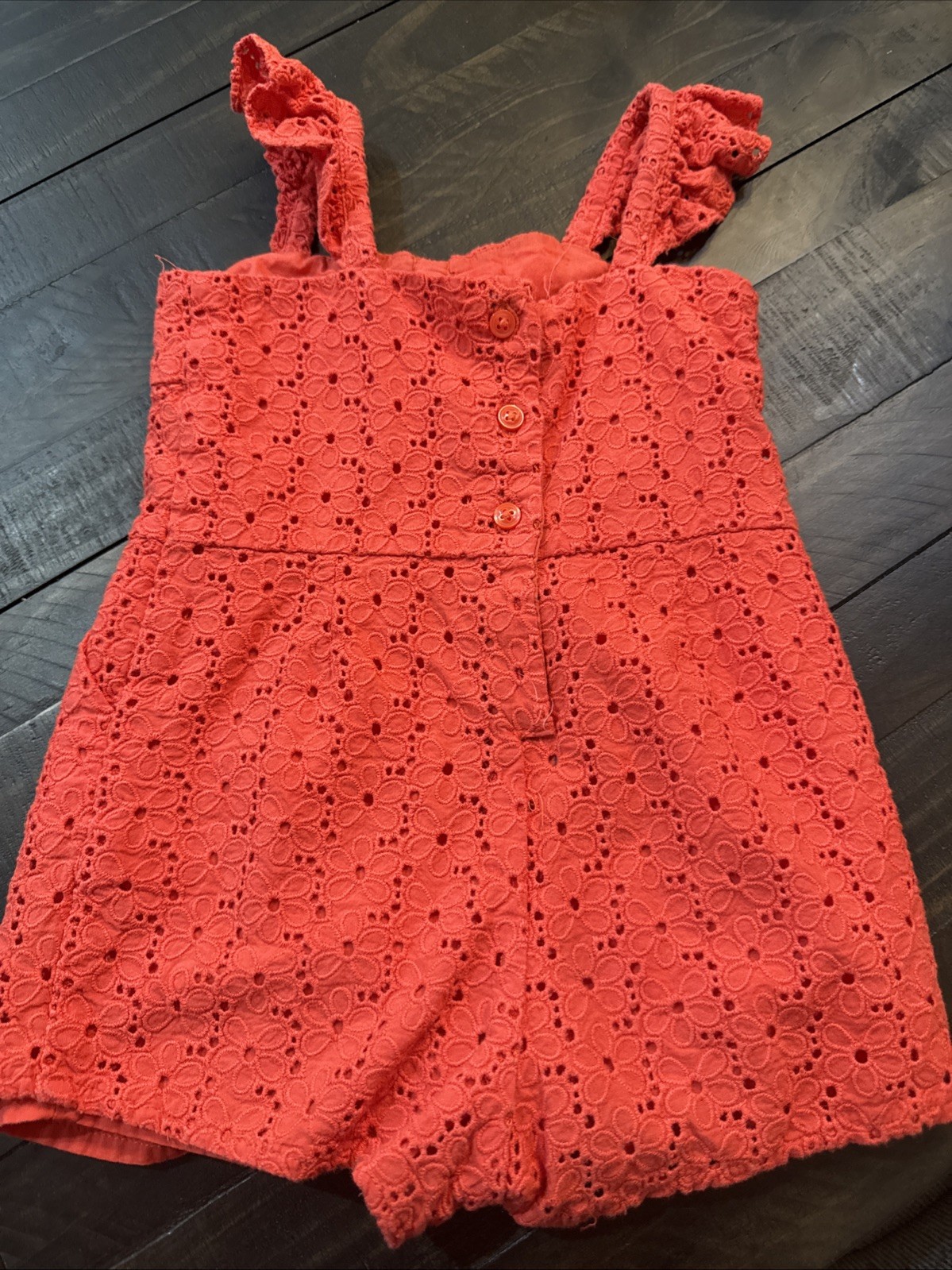 Occasion: Casual Season: Spring, Summer Vintage: No Department: Girls Size: 12-18 Months Brand: Janie and Jack Garment Care: Machine Washable Material: 100% Cotton Color: Red Number of Pieces: 1 Piece Personalize: No Handmade: No Sleeve Length: Sleeveless Accents: Ruffle Type: One-Piece Style: Romper