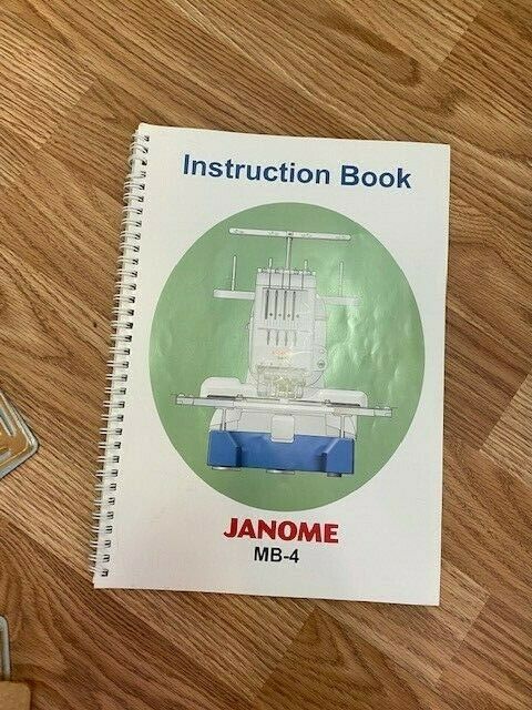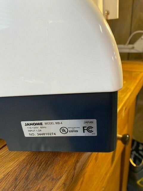 Janome MB-4 Four Needle Embroidery Machine The Janome MB-4 is the "World's First" home-use four-needle embroidery machine! Everything you love about Janome embroidery with four times the capacity! And so easy! Just set up your embroidery and move on to other projects while the MB-4 gets it done. The MB-4 works with most embroidery formats, including those used by industry professionals. It can use six industry-standard Tajima hoops, as well as the four available Janome hoops to further expand your creative opportunities. This also comes with Hoop Tech hoops and Magna Hoops, You will have a hat hoop and 14 other sizes of hoops with brackets. I use the pink hoop tech hoops, I just bought those last year for $600.00. You also get Digitizer Jr, Software 4.0, You will get embroidery thread sent also to help you get started. You can wind your own bobbins with this machine, but you will need to purchase a shuttle for the MB4 and leave the piece inside the bobbin case, I use magnetic bobbins and they work great. You will also get a big spool of white bobbin thread if you want to fill your own, This machine is so easy to learn, I have enjoyed it. Contact me for more photos and any questions Features Backlit LCD screen. Auto thread cutter. USB memory key compatible ATA PC card port and USB port (Host) on RCS; USB port on MB-4 Compatible with Janome software Embroidery speed up to 800spm Built-in features: Built-in Designs: 50 Fonts: 10 Monogramming: 2 & 3 letter Expanded built-in memory Change colors to favorite thread: Janome, Robison-Anton, Madeira Drag & Drop editing for easy placement Embroidery design resize 80% - 120% by 1% Rotate in 1 and 90 degree increments (clockwise / counter clockwise) Flip vertically and horizontally Standard hoops: M1: 9.46" x 7.88" (240mm x 200mm) M2: 5" x 4.3" (126mm x 110mm) M3: 50mm x 50mm Embroidery area tracing My SET screen controls for contrast, in/cm, designation and other customization Zoom in and out Multi-language selection Stitch-out time indicator Stitch Counter Upper thread and presser foot sensors Manual thread tension control Ball bearing precision Accessories included with this offer. This will differ from what comes with a new machine. Bobbins Needles Embroidery Hoop M1 9.46" x 7.88" Embroidery Hoop M2 5" x 4.3" Embroidery Hoop M3 2" x 2" Power Supply Cable Copy of Instruction Book
