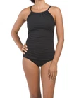 NEW WITH TAGS Retail $85 Solid Black HIGH NECKLINE ADJUSTABLE STRAPS ELASTIC SHELF BRA SUPPORT SOFT NON-REMOVABLE PADDING NO UNDERWIRE Should fit a D-Cup (my best guess) LINED MODERATE COVERAGE AT REAR Hygienic Liner 92% POLYAMIDE 8% ELASTANE
