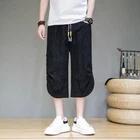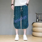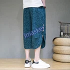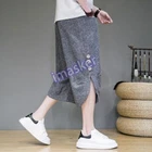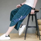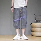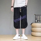 Men Japanese Hip-hop Samurai Trousers Crop Pants Wide Leg Tapered Chic