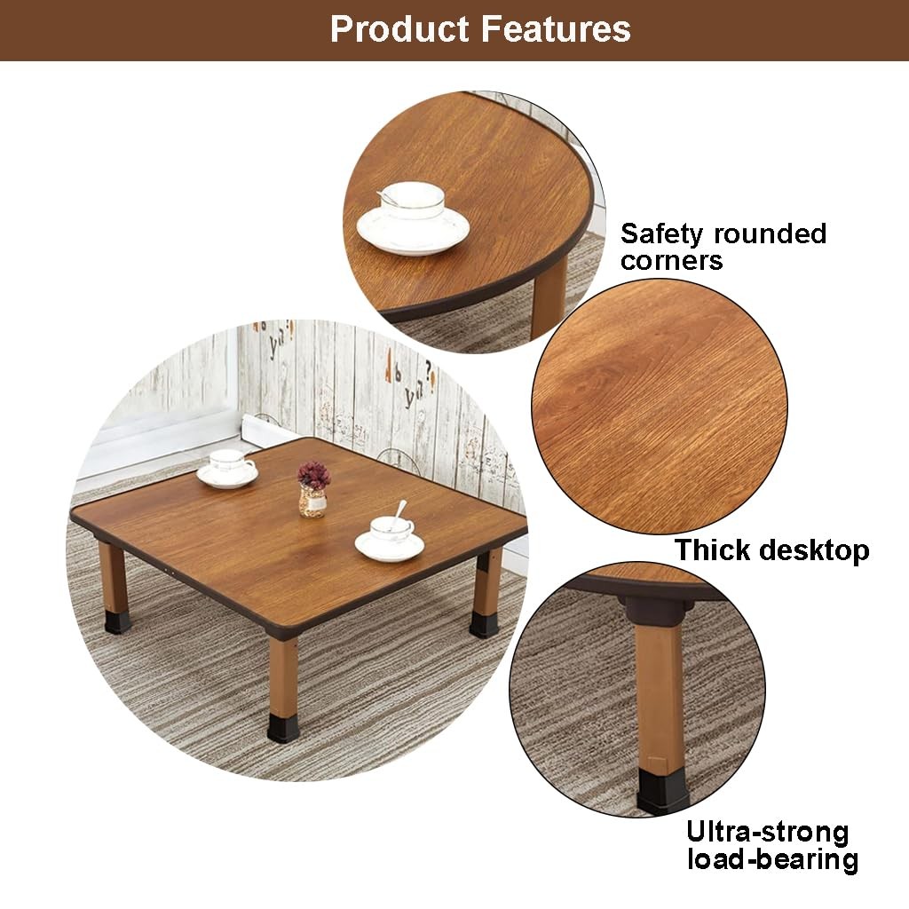 Product name: folding table/ coffee table/Japanese-Style Sitting Table/Household dining Table/tea Table/Small table Material: MDF Product size: 60x30cm, 70x30cm, 80x30cm ★【Foldable design】This Sofa Side Table easy to and save space, especially suitable for small apartments and rental companies. It is designed to be easily folded, to when not in use, or to carry on your car for camping. ★【Sturdy& Durable Tea table】This premium wood coffee table is solid and durable with it sturdy construction, benefits for the long-term use. And the tabletop is thick and solid enough to support your daily items. The surface is easy to clean with just wet cloth to wipe. ★【Material】This Dining Table is made of MDF. The table top is smooth, easy to clean, good stability, not easy to deform, no need to assemble. ★【Strong load-bearing capacity】This Japanese tatami low table shape is beautiful, Smooth edges and corners/safety/prevent bumping, durable, the load-bearing capacity is about 80kg, Strong support. ★【Multi-function】This coffee table can be used as a sofa table, coffee table, dining table, negotiation table, small coffee table in the living room, bedroom office/leisure table, etc. used for drinking tea/reading/learning, etc., to meet your various needs.