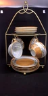 Japanese Hand painted Luster ware Tea Set With Dessert Plates & Storage stand. Condition is Used with aging .No cracks or chips some fading on dessert plates. Just needs some good cake or pie with tea or coffee! Shipped with USPS Priority Mail.
