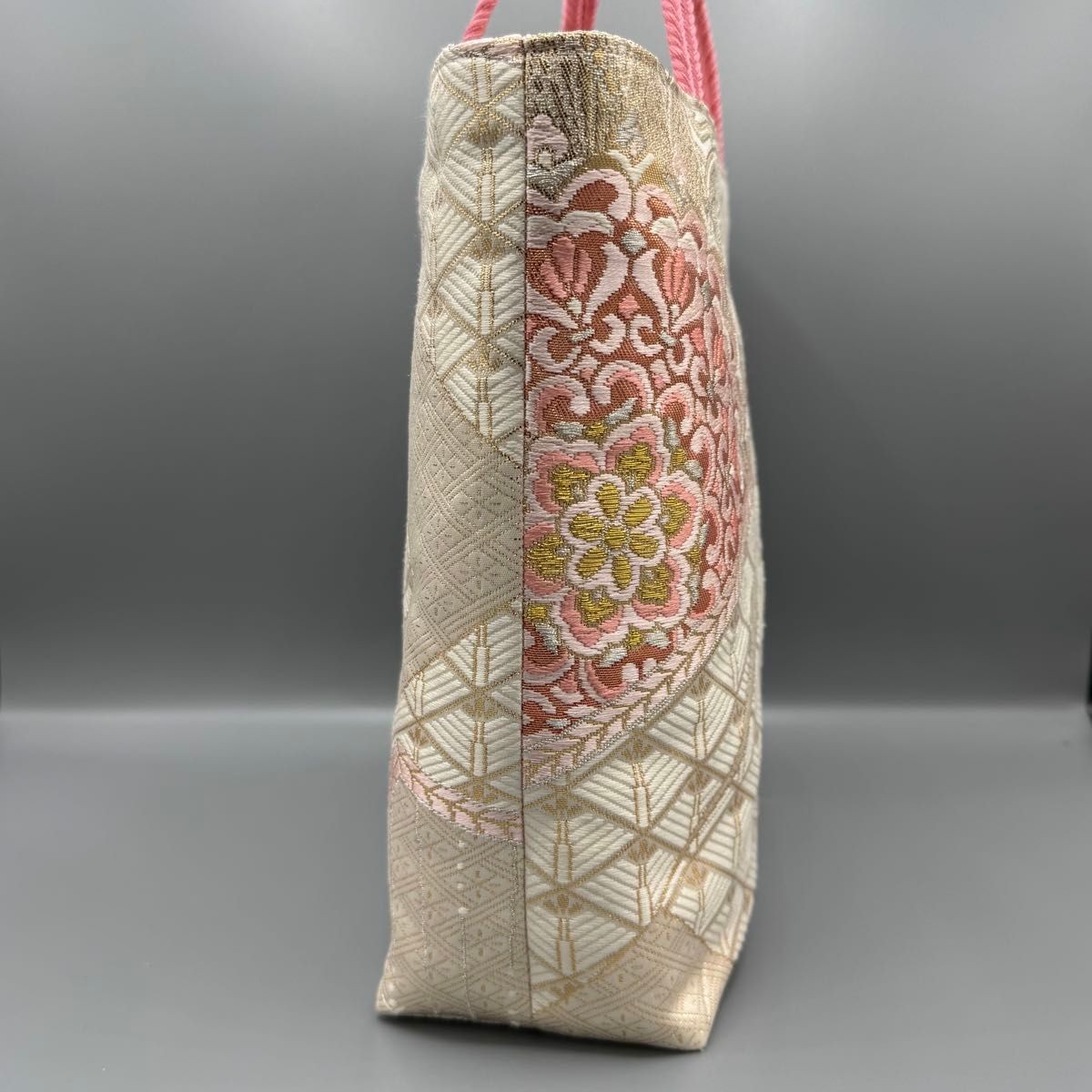 Absolutely love this unique tote! The vintage kimono obi fabric is stunning—luxurious gold and pink sakura details make it feel so special. Lightweight but sturdy, with a handy inner pocket. Adds a touch of elegance to any outfit while being practical for daily use. The slight variations in the weave give it character, and knowing it’s handmade from recycled materials makes it even better. Shipping from Japan was smooth, and the used condition is barely noticeable. A perfect blend of function and timeless Japanese artistry!