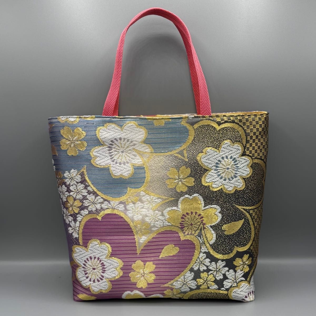 $ 98.89Handmade Japanese Kimono Obi Silk Tote Bag with Pink Beige White Gold Embroidery