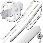 Black Katana With an overall length of 39 INCHES, a handle length of 11.5 INCHES, and a blade length of 27.5 INCHES, this foam katana strikes the ideal balance between authenticity and convenience, making it perfect for cosplay, theatre, and other events. Black Ninja Katana Standing at an overall length of 42.5 inches, with a 31.5-inch blade and a handle length of 11 inches, the sword showcases authentic proportions for a true Japanese Ninja Katana experience. The guard dimensions of 4 x 3 inches and an inner core of 10mm contribute to its realistic feel. Cosplay Katana-Black with Belt The pommel has a black chain decoration that measures, 75 inches long. Case Overall Length: 12.25 Inches, Case Material: Nylon Cosplay Katana-blue Measuring at 39 inches overall, with a handle length of 11.5 inches and a 27.5-inch blade, this foam katana perfectly replicates Hitsugaya's Hyorinmaru. Ideal for LARP, costume parties, cosplay events, theatre performances, and more. Real Katana-Black 68" Dive into the Details with Precision Specifications - an Overall Length of 68 Inches (in Scabbard), a 48-Inch Blade, and a 1.25-Inch Blade Width. The 3mm Thickness Guarantees Strength, While the 16-Inch Handle Adds Balance and Control to This Formidable Katana. Real Katana-Blue 41" Experience the traditional Japanese craftsmanship with a heat-tempered 28.5-inch blade showcasing an authentic Hamon, created using a fast cooling method. The Hi or Blood Groove adds balance and maneuverability. Real Katana-White 38" Measuring at 38 inches overall, with a 26.25-inch carbon steel blade and an 11.75-inch handle, our katana is designed exclusively for decorative and display purposes, featuring a Manji Guard for added aesthetic appeal. Real Katana-White Snow 41" Measuring 41 inches overall with a 26-inch blade, 15-inch handle, and featuring intricate details, this decorative katana is ideal for showcasing your love for anime, making it a must-have for collectors and fans alike. Real Katana-white 40.75" With an overall length of 40.75 inches, a 26-inch blade, and a handle length of 14.75 inches, this replica katana boasts a substantial presence. The 3.75mm blade thickness ensures durability, making it a standout addition for enthusiasts and collectors alike. Real Steel Katana-Black 40" Whether you're a collector or attending conventions, this katana is a must-have. With an overall length of 40 inches and a high-gloss black blade, it's not just a sword ? it's a statement piece that resonates with millennial style. Plus, it comes complete with a hardwood sheath for convenient storage and transport. White Katana With an overall length of 39.25 inches, a handle length of 11.75 inches, and a 27.5-inch blade, our foam katana mirrors the proportions of the anime original, offering a striking visual impact at conventions and gatherings.