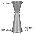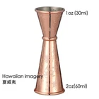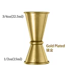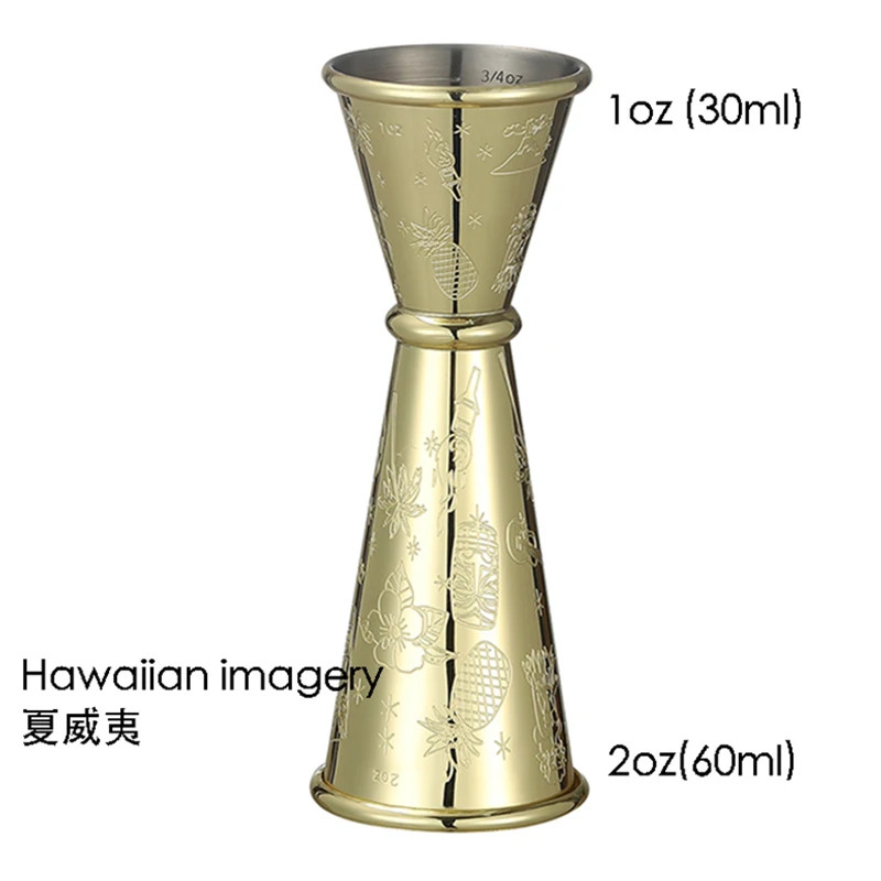 Japanese-Style Double Cocktail Jigger measures ingredients for mixing beverages and making craft cocktails and other mixed drinks Made from stainless steel with brushed finish,Copper Plating,Gold Plating,Gunmetal Black, precise measurements; versatile addition to flatware and bar accessories Smaller jigger measures up to 1-ounce (30-milliliters) with 0.5-ounce (15-milliliters) and .75-ounce (22-milliliters) increments marked on the inside Larger jigger measures up to 2-ounces (60-milliliters) with 1.5-ounce (45-milliliters) increment marked on the inside