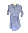 Japna Shirt Dress Medium Cotton Blue White Stripes Button Front Elastic Waist Long sleeve roll tab sleeve Measurements in pics are pit to pit and full length Excellent pre-owned condition Coastal coastal grandma beach Pockets