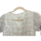 JAPNA | HOUNDSTOOTH BUTTON FRONT CROP TOP PUFF SLEEVES XS NEW WITH TAGS! The JAPNA top is an ultra-chic piece that will be sure to make a statement in your wardrobe. This crop top features a classic houndstooth pattern and short tie sleeves, giving it a modern touch. The stylish button front detail adds the perfect finishing touch. You'll love the effortless style of this charming top, making it the ideal choice for any occasion. Step out in style with this attractive top that will be sure to turn heads. -JAPNA -Crop -Houndstooth -Short tie sleeves -Button front -Smocking -Top SIZE XS MEASUREMENTS (approximate) in inches taken flat: Bust 15/Length 15 NEW WITH TAGS! Offers Welcome! Bundle for Best Savings! Ships same or next day, excluding holidays! 229T