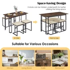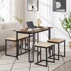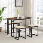 Our 4-piece dining table set is designed with a large rectangular table, a bench, and 2 stools, providing more space and comfort while enjoying a delightful drink time with your family or entertaining friends with refreshments at home. The frame is made of heavy-duty steel with powder-coated surfaces, ensuring excellent rust resistance and sturdiness. And the thickened board is made of premium MDF board that is scratch-resistant and waterproof for easy cleaning. Besides, the large tabletop and 3 comfy chairs would bring you a more comfortable dining and sitting experience. When not in use, the bench and 2 stools can be tucked under the table, which would not take much space. And you can adjust the bottom footpads to make the table set fitting uneven floors,ensuring more stability.Features: Free Shipping Over $49.99* Details Javlergo 4-Piece Dining Table Set, Space Saving Kitchen Table with Bench and Two Product Description: Our 4-piece dining table set is designed with a large rectangular table, a bench, and 2 stools, providing more space and comfort while enjoying a delightful drink time with your family or entertaining friends with refreshments at home. The frame is made of heavy-duty steel with powder-coated surfaces, ensuring excellent rust resistance and sturdiness. And the thickened board is made of premium MDF board that is scratch-resistant and waterproof for easy cleaning. Besides, the large tabletop and 3 comfy chairs would bring you a more comfortable dining and sitting experience. When not in use, the bench and 2 stools can be tucked under the table, which would not take much space. And you can adjust the bottom footpads to make the table set fitting uneven floors,ensuring more stability. Features: Dining Table Set for the Whole Family: The 4-piece dining table set includes a wooden table, a bench, and 2 stools, which are perfect for family gatherings or entertaining friends. And the spacious tabletop measures 43.3" x 23.6" (L x W), providing a comfy and relaxing dining environment. Sturdy & Stable Structure The dining table set is made of high quality MDF and powder coated metal frame, which is scratch resistant and not easy to rust. And the stools and bench are reinforced with additional vertical bars to provide strong support and stability. Besides, there exist adjustable footpads on the bottom for keeping stability even on uneven floors. Space-Saving Design: The bench and 2 stools could be nested under the dining table, which would not take up much floor space when not in use, and it can be a perfect solution for small rooms, apartments, small kitchens, or studios. And you can also put stools on the table for cleaning the floor under the table conveniently. Industrial & Stylish Appearance With beautiful wooden finishes and clear lines, the industrial kitchen dining room table set can be matched with any style of home decoration. Equipped with a woven cushion that allows you to sit for a long time without feeling tired and comfortable all day long. In addition, the dining table can also be served as a computer desk, writing workstation, gaming desk, bistro table, office desk, and more. Effortless Installation & Easy Maintenance The modern wooden table set with all necessary accessories is effortless to set up. According to the detailed instructions, you can easily assemble the table set. Specification: ColorBlack/Brown MaterialMDF, Powder-Coated Steel Dining Table Size43.3'' x 23.6'' x 30'' (L x W x H) Bench Size33.4'' x 14.2'' x 18'' (L x W x H) Stool Size15.75'' x 14.2'' x 18'' (L x W x H) Weight Capacity of the Dining Table165 lbs Weight Capacity of the Bench330 lbs Weight Capacity of Each Stool330 lbs Package Includes: 1 x Dining Table 1 x Bench 2 x Stools 1 x User's Manual