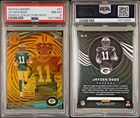 This Jayden Reed RC 2023 Illusions Trophy Collection Gold PSA 8 card is a must-have for any Green Bay Packers fan or sports trading card collector. With a print run of only 25, this card is a rare find and features a gold parallel/variety. The card is also serial numbered and is a rookie card, making it an even more valuable addition to any collection. The card has been professionally graded by the Professional Sports Authenticator (PSA) and has a grade of 8. It is part of the 2023 Panini Illusions set and has the card number 41. This card is a great investment for any fan or collector looking to add a unique and valuable piece to their collection.
