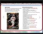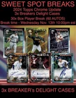 COMBINED SHIPPING DISCOUNT WILL BE APPLIED FOR MULTIPLE PURCHASES NO PURCHASE NECESSARY. See full rules at https://ebaycasebreaks.com/entrants . Topps Chrome Update Breakers Delight 3x Case (30 Box) Player BREAK 60 AUTOS You are buying the Player listed in the title of this break. You will receive all cards pulled of this player ALL CARDS SHIP STREAM INFO: Our facebook group where the live stream for this break will occur is Sweet Spot Breaks Link to the group: https://www.facebook.com/groups/4553807314697369 HITLESS BREAKS - in the unfortunate case that none of your players hit any cards, you will be refunded your shipping cost BREAK CONFIGURATION: 60x TOTAL AUTOS 30x 2024 Topps Chrome Update Baseball Breakers Delight Boxes (3x FULL CASES) 2 autos per box, 1 delight exclusive youthquake per box, 3 #'d parallels per box, 6 refractors per box LOOK FOR 1/1 DEBUT PATCH AUTOS SHIPPING: You will be sent a combined invoice for all your spots after all the auctions have ended. BREAK TIME: This break will take place in my Facebook group Sweet Spot Breaks , on Wednesday November 13th 10:00 pm eastern, link to the stream posted at the top. Auctions must paid before the scheduled break time. Failure to do so can result in cancellation