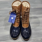 Jbu By Jambu Maplewood Duck Boots Water-Resistant Lace-up Boots 8M Tan Navy Size 8M Tan Navy Upper Material: Faux leather Outsole Material: Rubber New with box, the box may have damage from storage or transport or may have store stickers attached or removed. Thank you for shopping with TrendiStuff Market Inv# B431