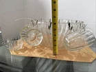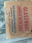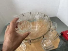 This vintage punch bowl set from The Jeannette Glass Co. is a beautiful addition to any collection. The set includes 12 matching cups and a bowl made of clear pressed glass. The set also comes with 12 metal hocks and a plastic spoon for easy serving. The production style of this set is pressed glass, and it was made in the United States. The item length and weight can be seen in the pictures provided. This set is perfect for any occasion and will add a touch of elegance to your home. No chips not cracks , look at the pictures before making your purchase